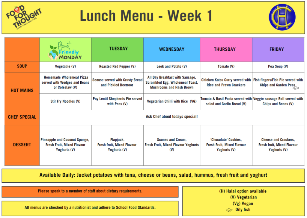Food for Thought provide our school meal service. Our kitchen staff help to improve the well-being of our students by preparing fresh, delicious and nutritious meals they love.